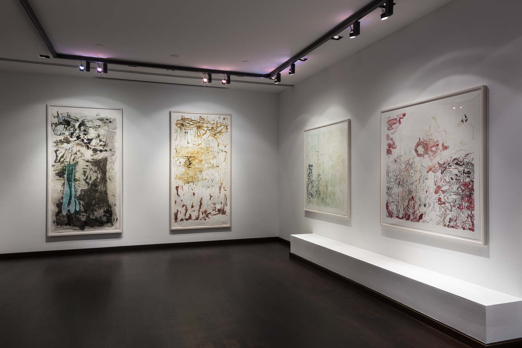 Echo of the Light presented a selection of paintings and monotypes from the past 25 years. The selection, which began with work of the late 1980s and ended with more recent monotypes, highlighted Kirkeby’s continued interest in nature within the context of abstraction and mark making. The paintings on view were composed of a delicate balance of vibrant hues and carefully cast shadows engaging in a complex play of scale and spatial depth. The monotypes, including a body of work made in 2014, were a rarely exhibited medium of the artist’s oeuvre. Each monotype is a unique print, technically executed in a way similar to his paintings, they allowed Kirkeby a freedom and spontaneity in their production.