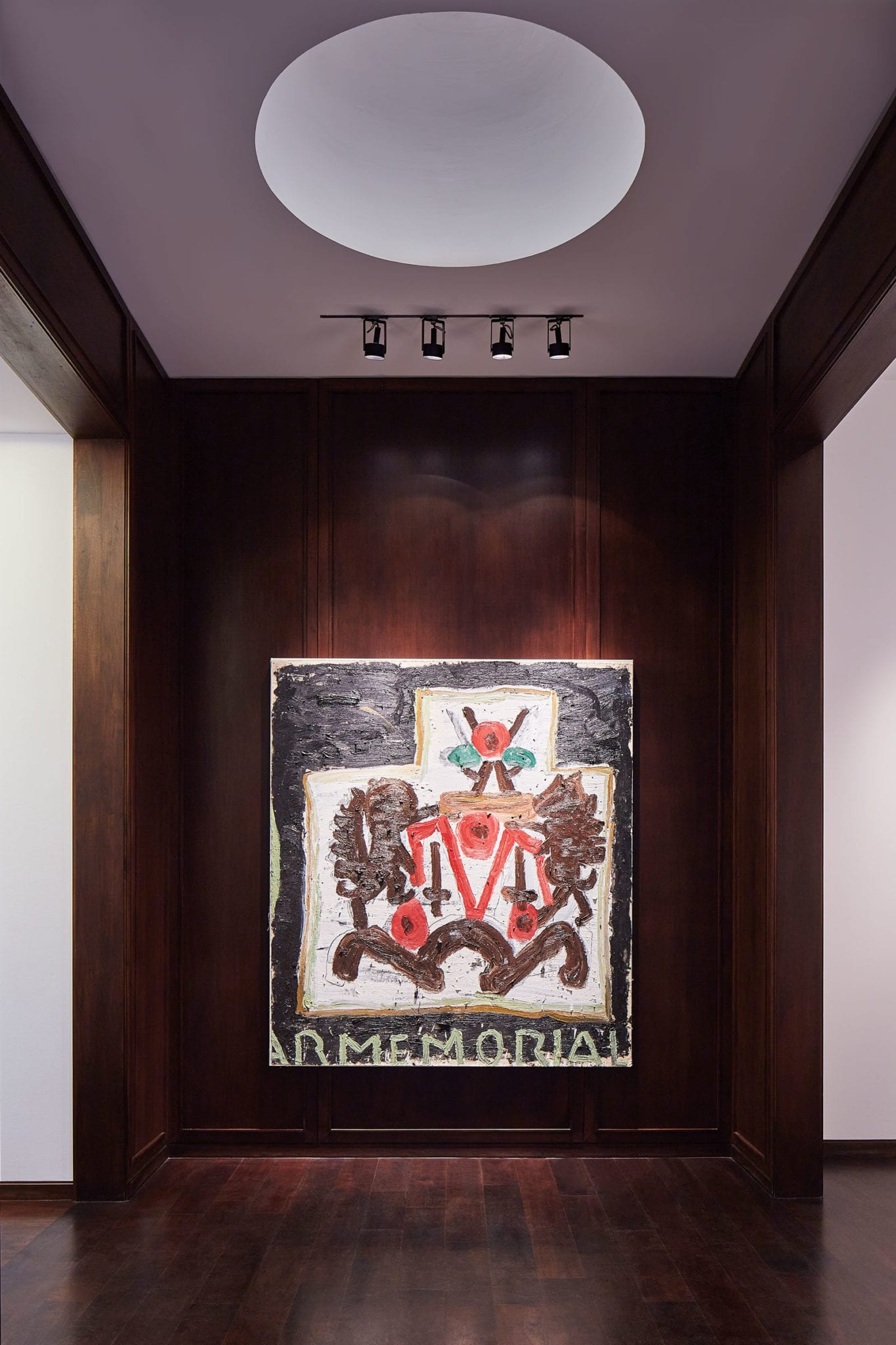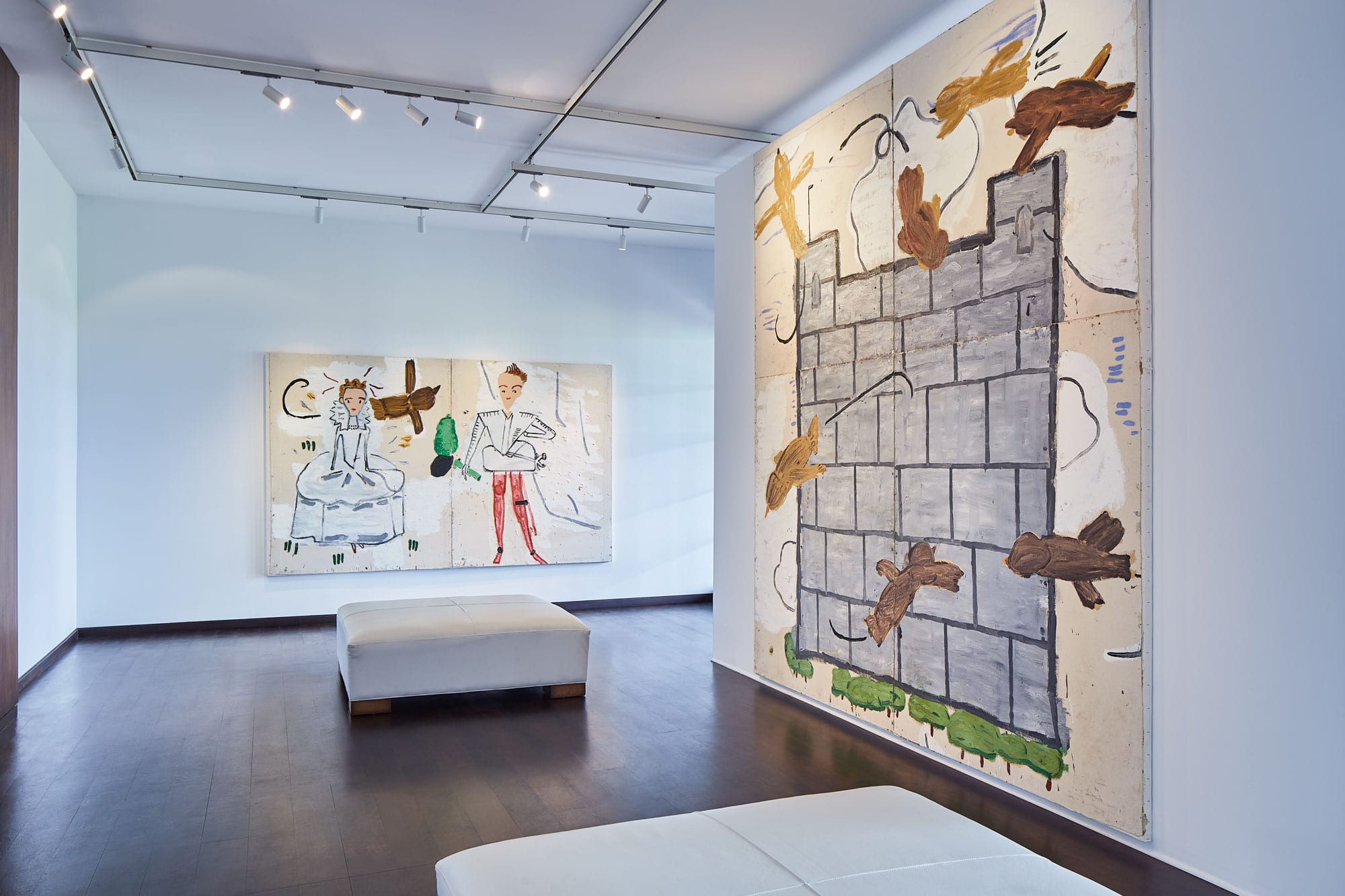 Titled Let it Settle, the exhibition presented a group of paintings and drawings that reflect the artist’s interest in popular culture, deftly merging political, social and autobiographical elements. The exhibition included subjects as diverse as the historic British monarchy and the imaginary character Snow White, memorial crests and castles. The exhibition was curated by Rodolphe von Hofmannsthal of David Zwirner and Jari-Juhani Lager, Wylie’s long-time representative.