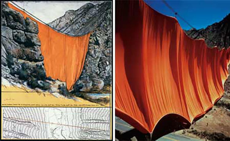 Christo & Jeanne-Claude, husband and wife artists who together have created environmental artworks in urban and rural sites around the world, were represented by works from four projects undertaken between 1970 and 1998: Wrapped Reichstag, Berlin; The Pont Neuf Wrapped, Paris; Valley Curtain, Rifle, Colorado; and Wrapped Trees, Fondation Beyeler and Berower Park, Riehen, Switzerland.