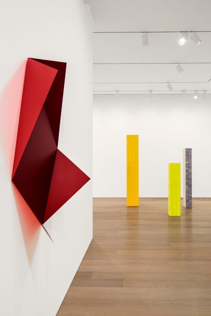 Rana Begum (b. 1977, Sylhet, Bangladesh; lives and works in London) focuses on the interplay between light and color, blurring the boundaries between sculpture, painting, and architecture. Her use of repetitive geometric patterns — found within both Islamic art and the industrial cityscape — is inspired by childhood memories of the rhythmic, daily recitals of the Qur’an. Influenced by the geometric abstraction of Minimalism and Constructivism and the work of artists such as Agnes Martin, Donald Judd, Jesús Rafael Soto, and Tess Jaray, Begum’s work ranges from drawings, paintings, and wall-based sculptures to large-scale public art projects.