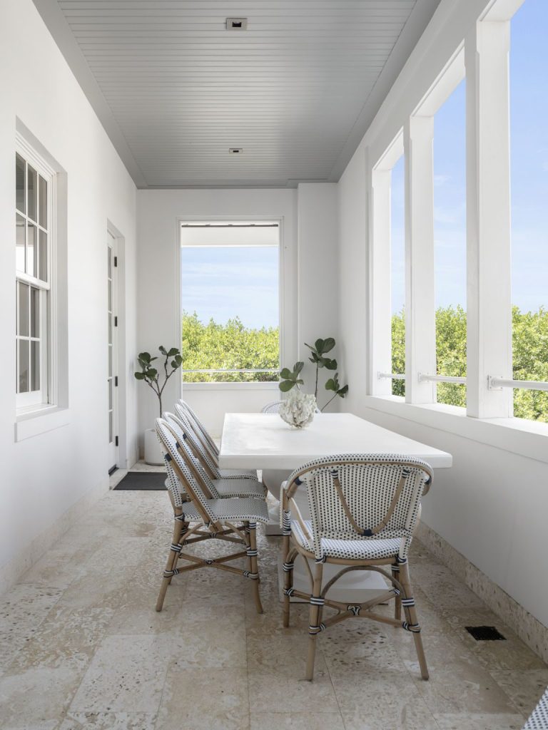Spacious and filled with natural light, this residence has been designed in every detail to offer sophisticated single-floor living. Set on the second floor, it is accessible via stairs or private elevator. The great room enjoys dramatic sunset views over the conservation area and opens to a covered porch with views of the central courtyard and reflecting pool. The porch is generously sized for outdoor dining and lounging in South Florida’s marvelous climate. The bright contemporary kitchen, separate from yet open to the dining area, and adjacent to a laundry room, receives beautiful eastern light from tall windows.